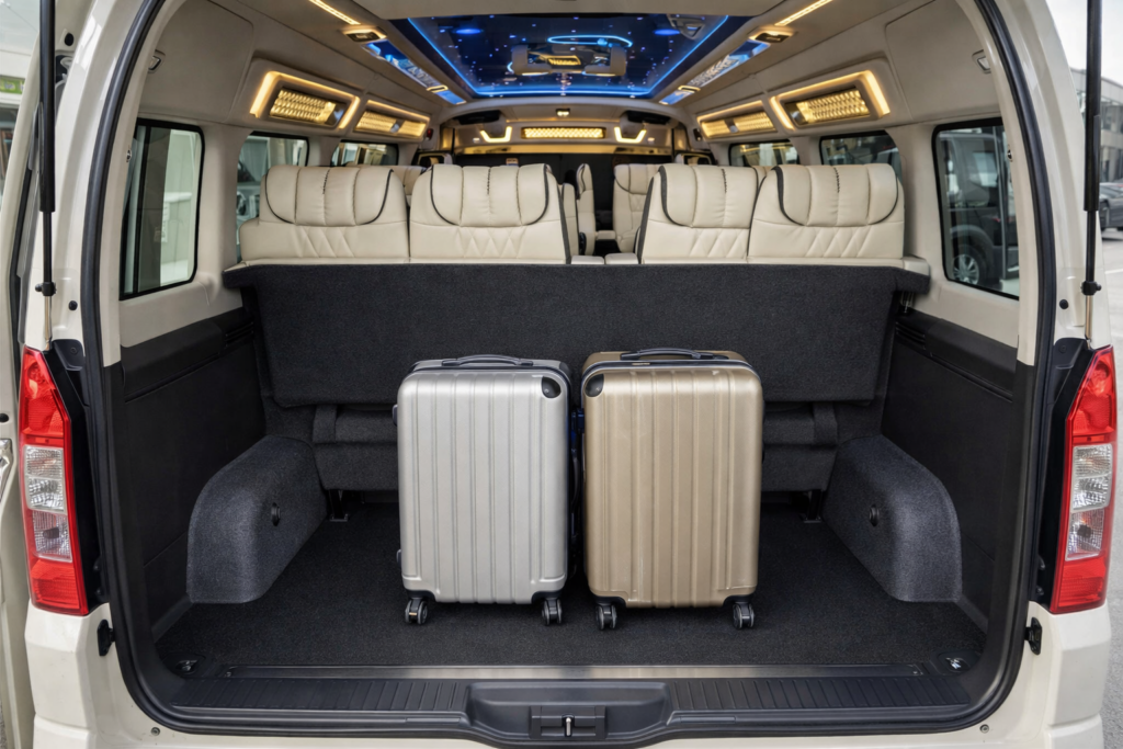 ความจุโดยประมาณ: ผู้โดยสาร 5–11 และสัมภาระ 1–10 ใบ (ขึ้นอยู่กับจำนวนคน/ขนาดกระเป๋า)